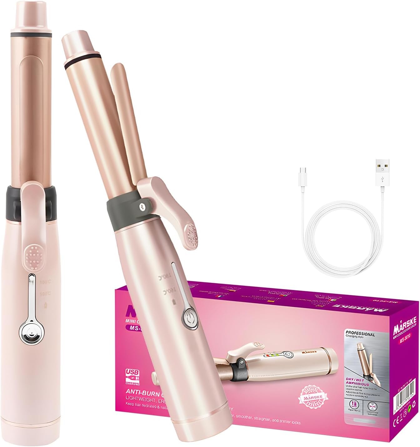 Mini Curling Wand Travel Cordless Hair Curler, 1 in/ 25mm Portable Curling Tong