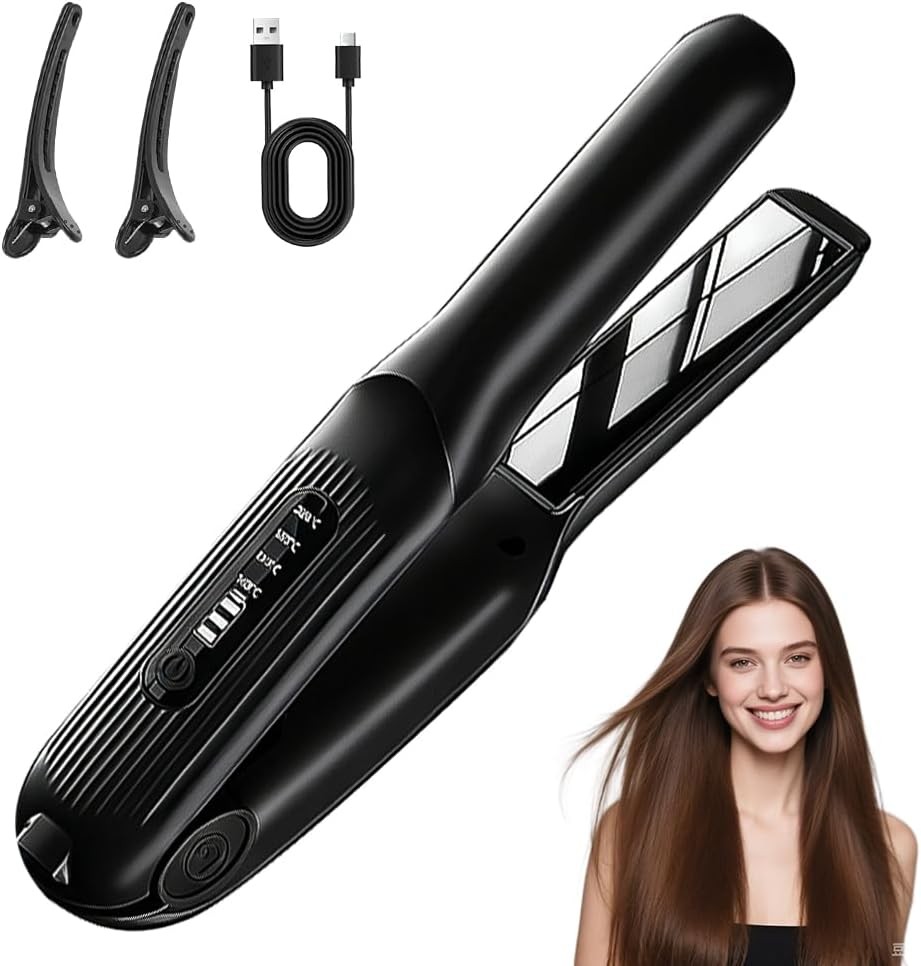 2 in 1 Mini Hair Straightener, Cordless Mini Hair Curler, 10s Fast Heating, Ove