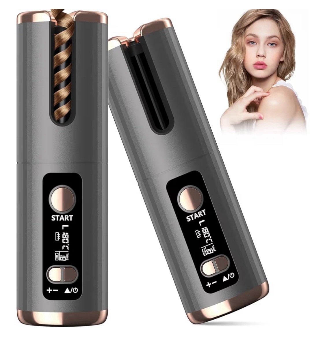 Cordless Automatic Hair Curler – USB Rechargeable Curling Wand with LCD Display