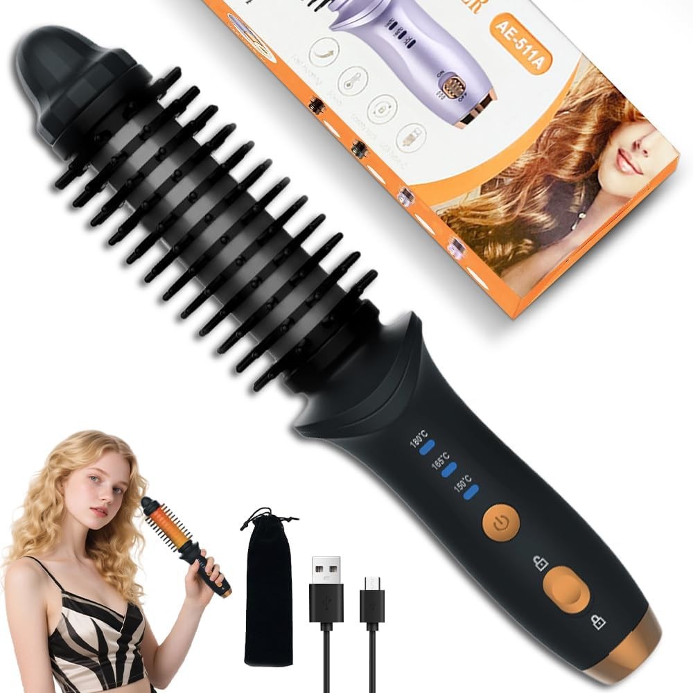 Zokbom Cordless Curling Brush, 3 in 1 Cordless Hair Curler, Cordless Hair Style