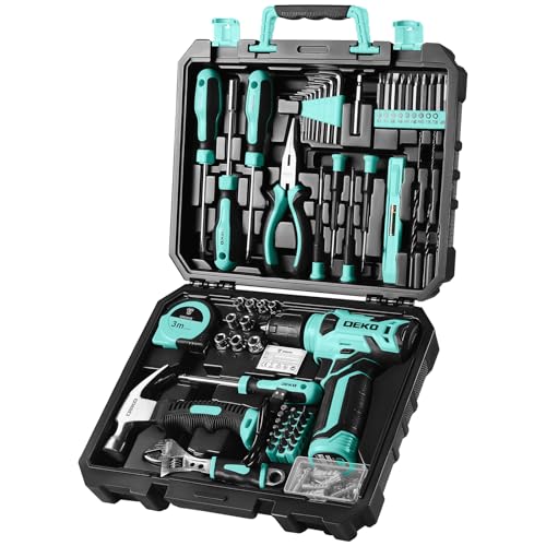 Tool Kit with Cordless Drill: DEKO Tools Set Box 126 Piece with 8V Electric Drill for Men,Woman and Home, DIY Hand for Furniture Assembling, Home Maintenance(Cyan)