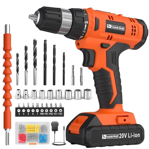 FADAKWALT 20V Cordless Drill Set ,Powerful Drill bit Sets,Torque 30N,21+1 Torque Setting,3/8” inch Keyless Chuck, 40pcs,Electric Drill with 2.0AH Li-Ion Battery and LED Light.