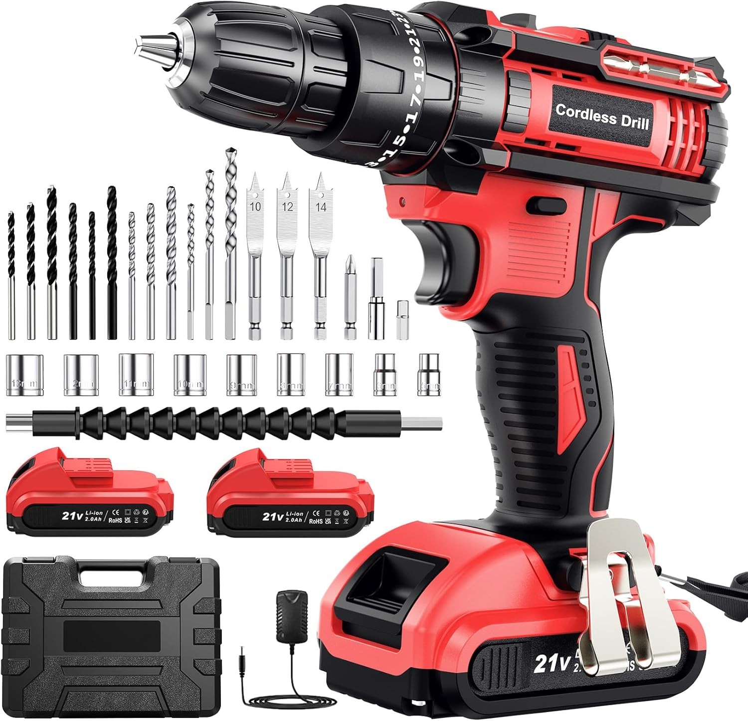 Cordless drill with 2 batteries