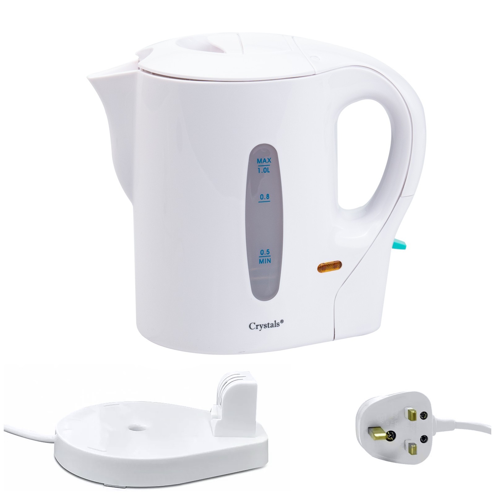 830W 1 LITRE ELECTRIC CORDLESS KITCHEN KETTLE CARAVAN TRAVEL HOT WATER WHITE JUG