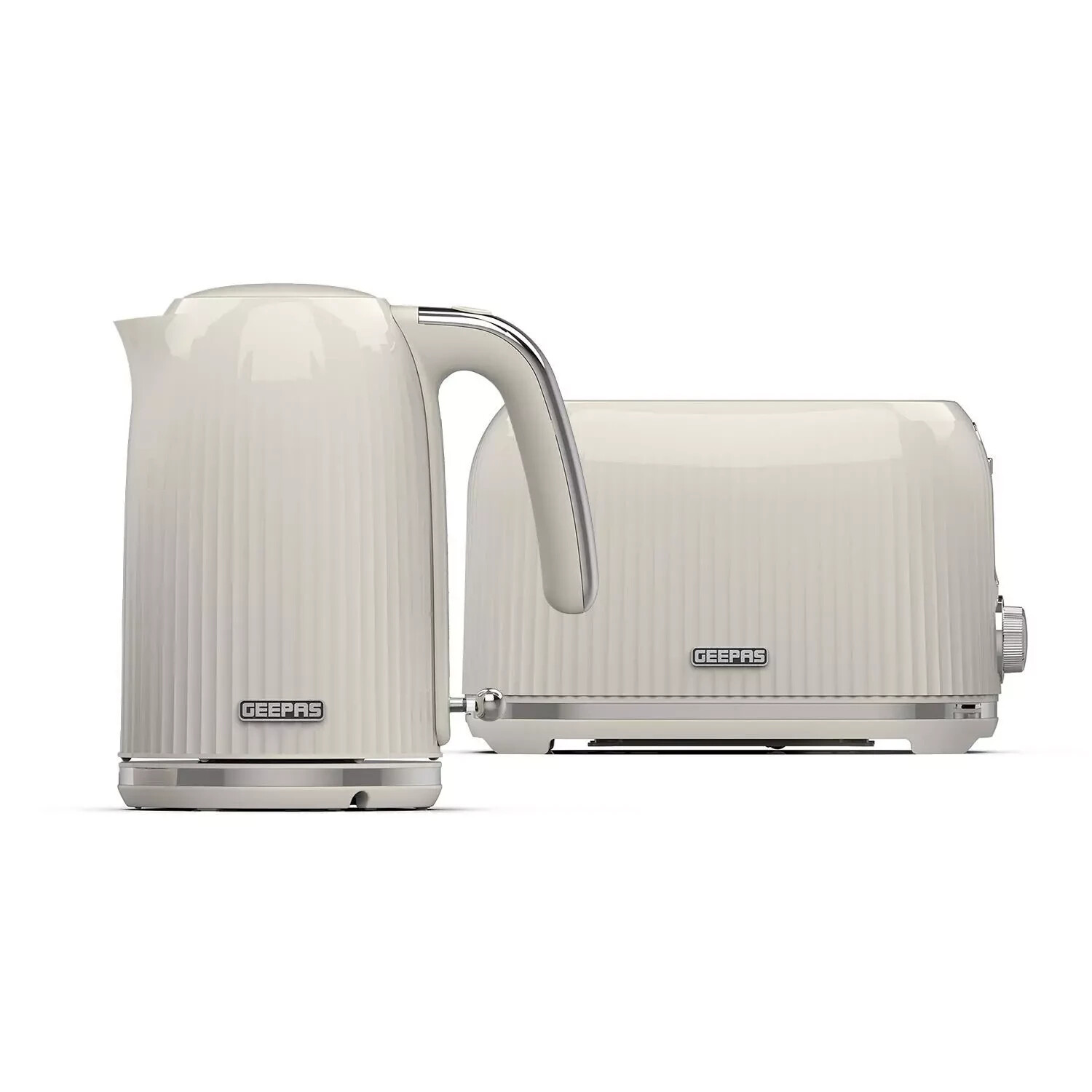 Geepas Fluted 2 Slice Bread Toaster & 1.7L Cordless Electric Kettle Set, Cream