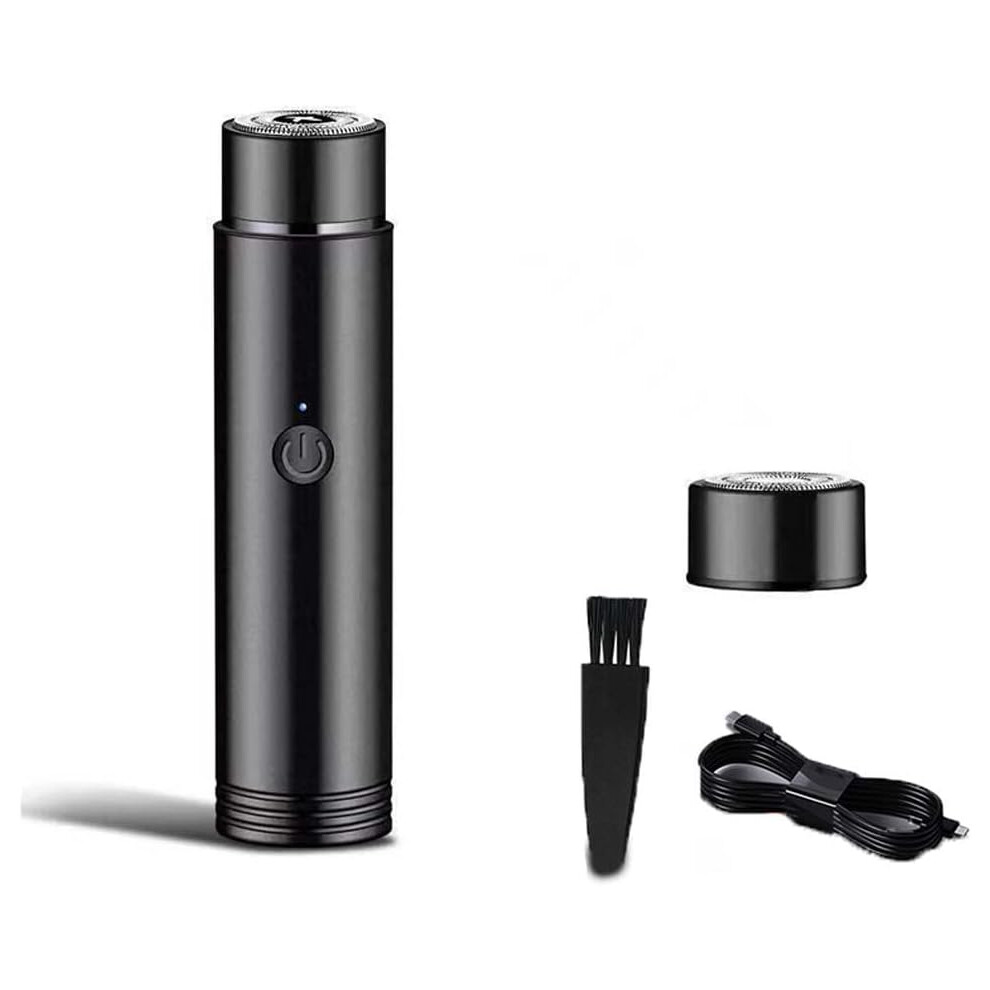 Portable Mini Men's Razor Wet Dry Shaver Cordless Electric Pocket Razor Detachable Head Black Travel Size