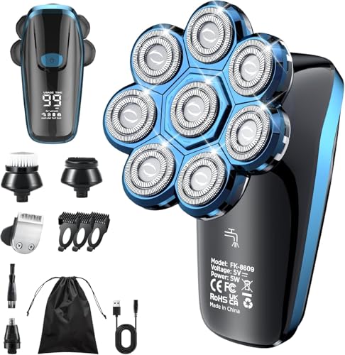 Head Shavers for Men, Upgrade 8D Rotating Electric Shavers for Bald Men Cordless Waterproof Wet & Dry USB Rechageable 99min Use Time LED Display Razor Beard for Home, Office, Travel