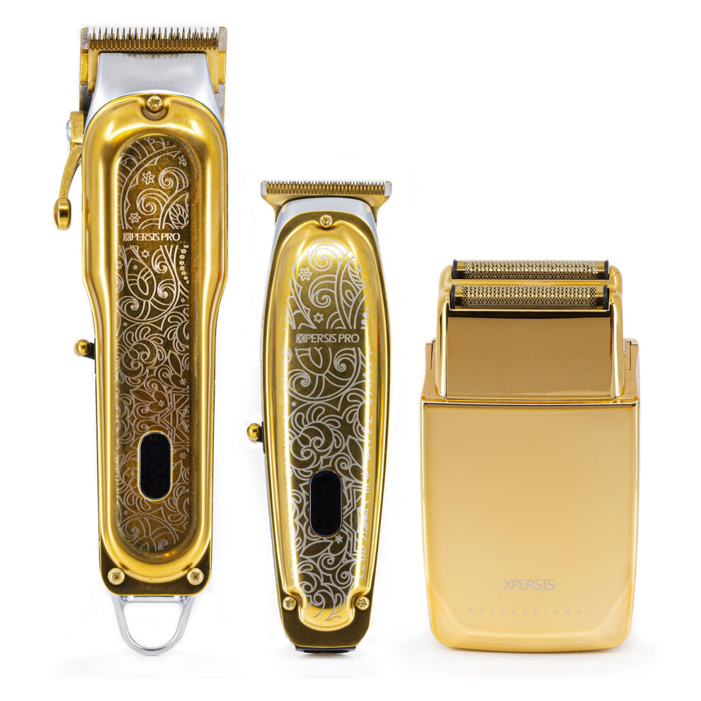 XPERSIS PRO Cordless Hair Clipper + Hair Trimmer for Mens and Barbers +Shaver with Sharp Blades, Cord/Cordless Electric Razor for Mens Gold