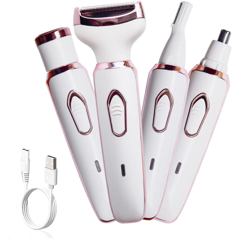 4 In 1 Trimmer For Women, USB Rechargeable Cordless Electric Razor With Floating Foil Head For Sensitive Skin, Wet & Dry Shaving Applicable, Portable