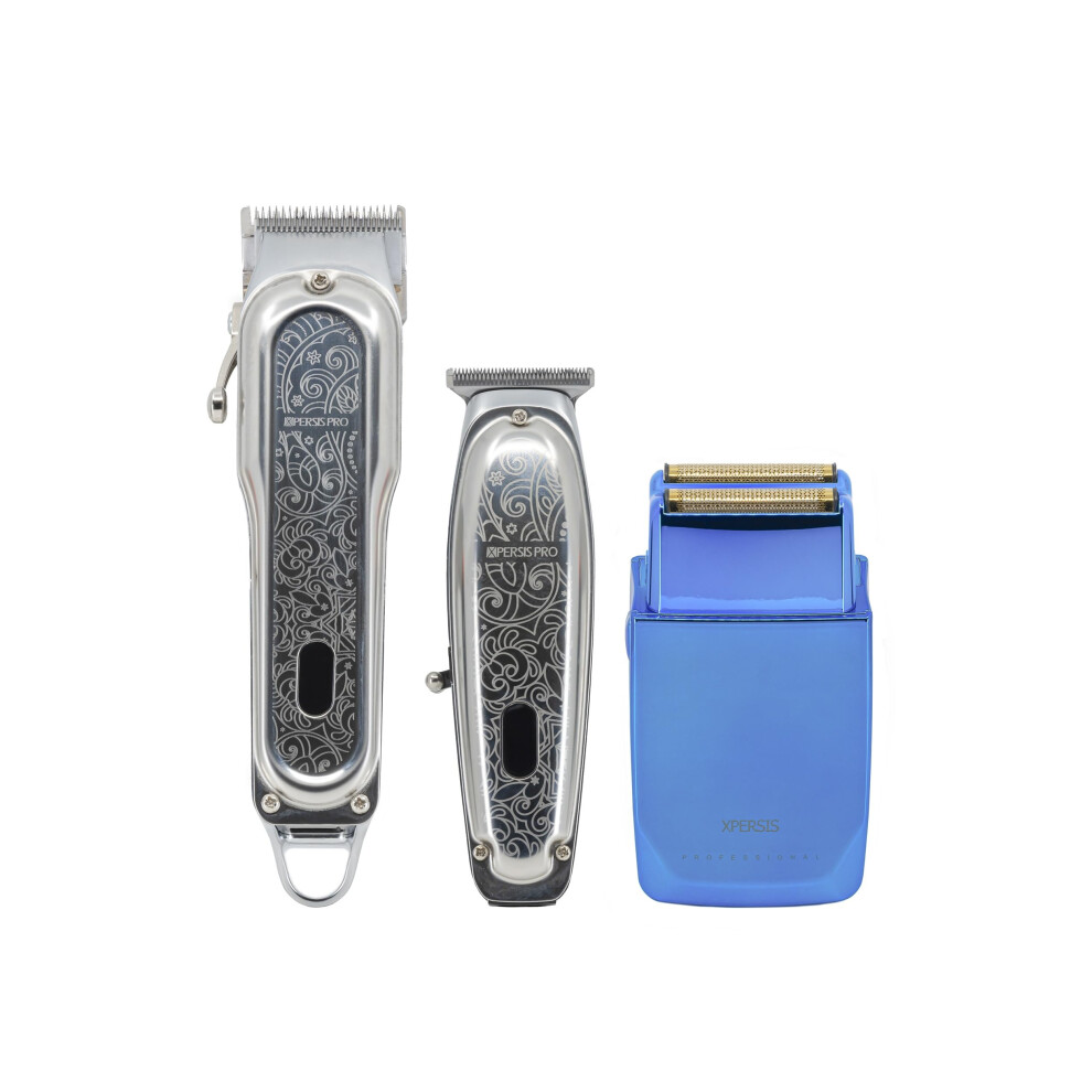 XPERSIS PRO Cordless Hair Clipper + Hair Trimmer for Mens and Barbers +Shaver with Sharp Blades, Cord/Cordless Electric Razor for Mens Silver & Blue