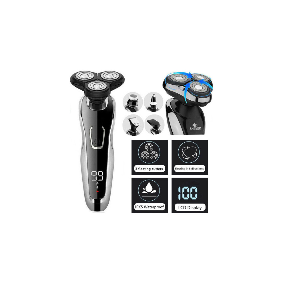 Men's 4D Floating Shaver, Smooth Shaving & Modern Design Cordless Wet/Dry Electric Razor with 5 Detachable Heads, IPX7 Waterproof, USB Charging,