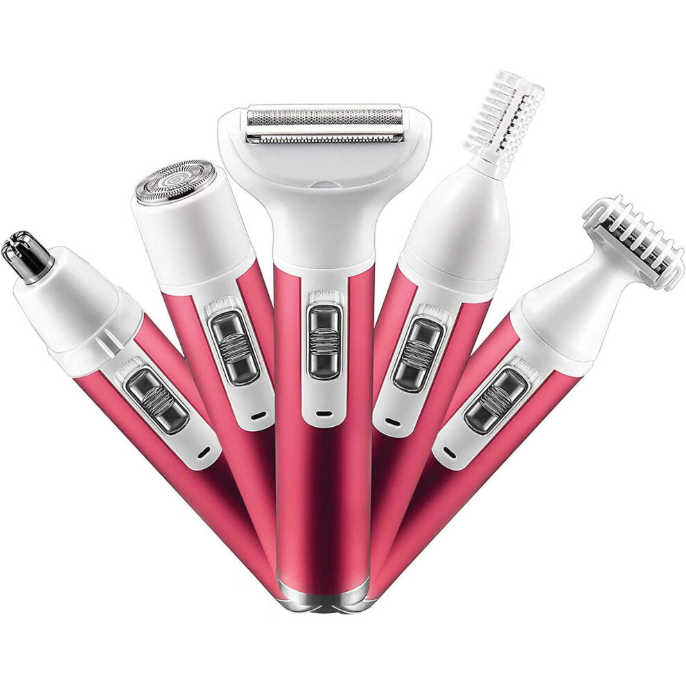Cordless Convenience Electric Razor for Women, Portable Wet and Dry Dual Use, 5 in 1 Trimmers for Legs, Face, Nose, Eyebrows, Bikini Area