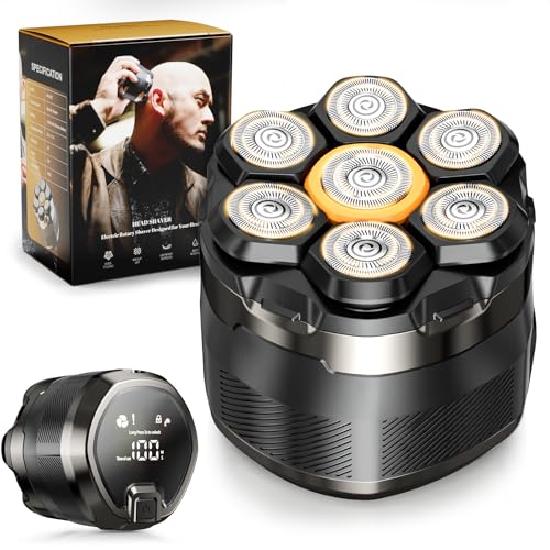 Head Shavers for Men, Ruspela 7D Electric Bald Razor for Bald Men 6-in-1 Cordless Rechargeable Rotating Shaver Heads IPX6 Waterproof Base Beard Clippers Nose Trimmer Grooming Set Father Gift