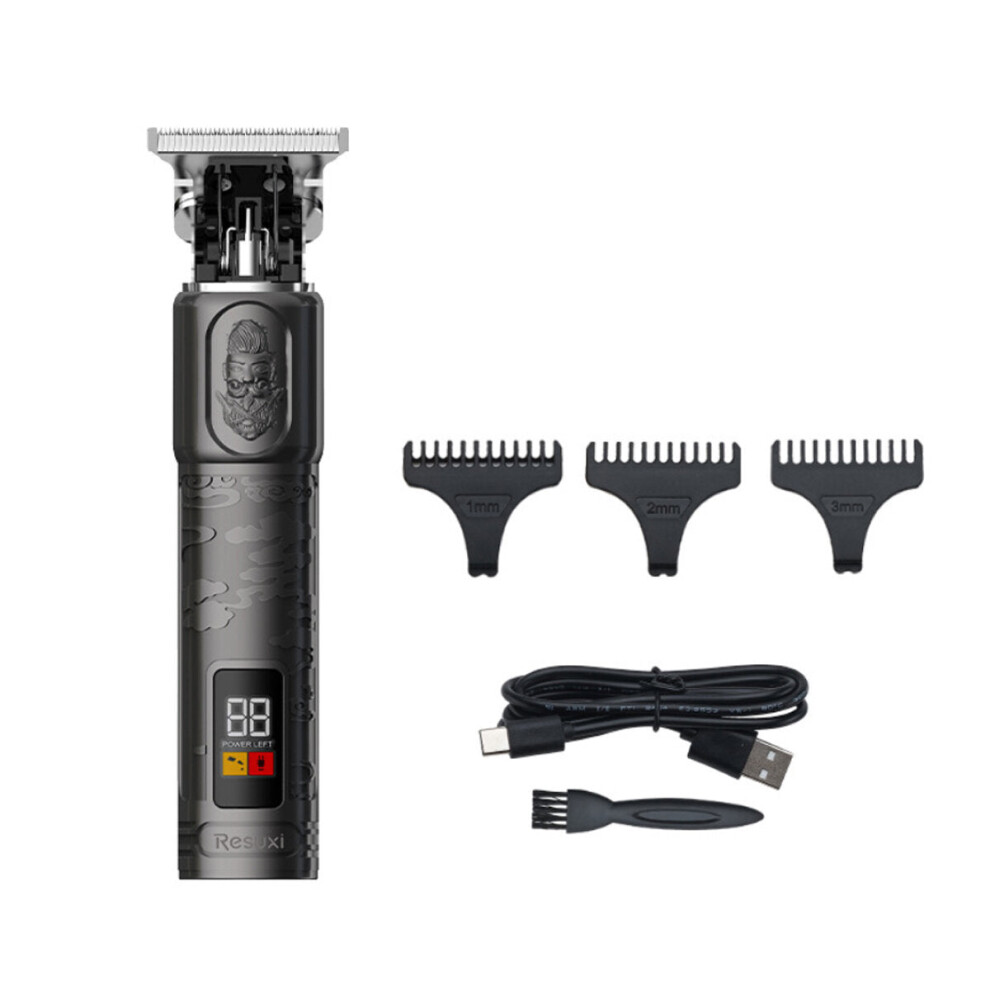 (Smoke Grey) LCD Digital Display Electric Hair Clipper USB Charging IPX4 Waterproof Engraving Hair Clipper Vintage Electric Cordless Hair Razor Beard