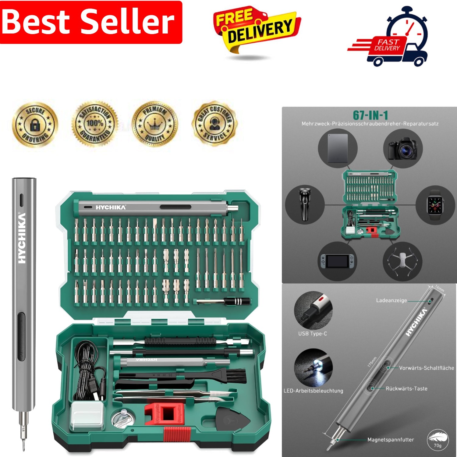 HYCHIKA Precision Cordless Electric Screwdriver, 67 in 1 Repair Tool Kit, Precision Screwdriver Repair Kit, USB Charging & LED Lighting, for Mobile Phone, Laptop