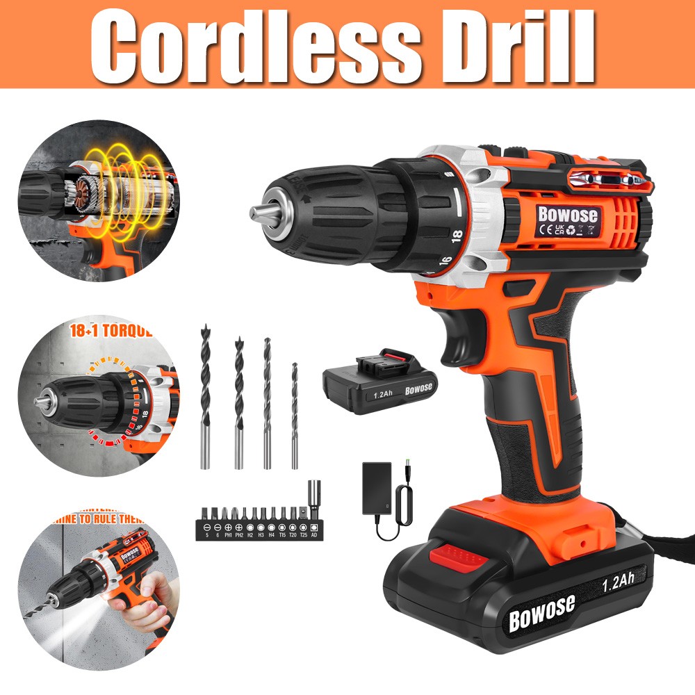 21V Combi Drill, 26pcs Cordless Drill Driver Electric Screwdriver 3/8" Combo Kit with 1 Li-ion Battery 1.5Ah, 25+1 Torque Power Drill Tool Kit, 45N.m Home Improvement Tool Cordless Screwdriver Set