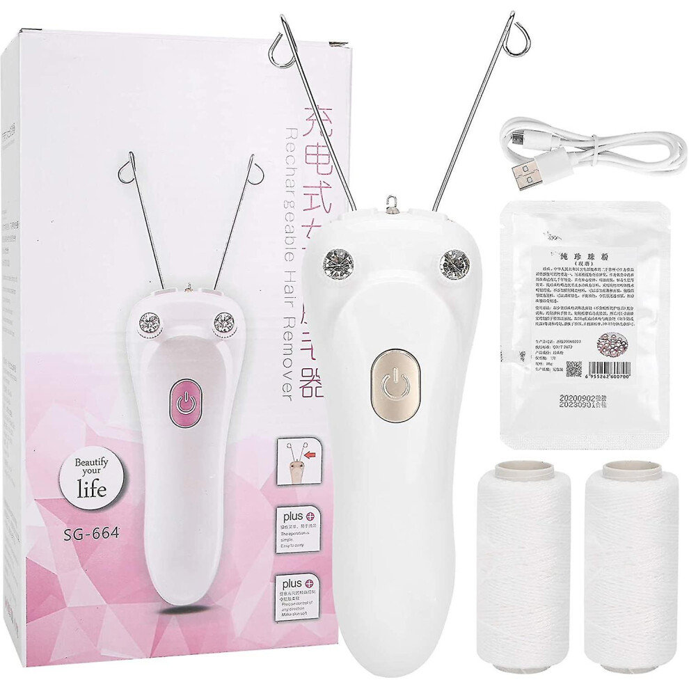 Electric Facial Threading Hair Removal Epilator LED USB Rechargeable Cordless