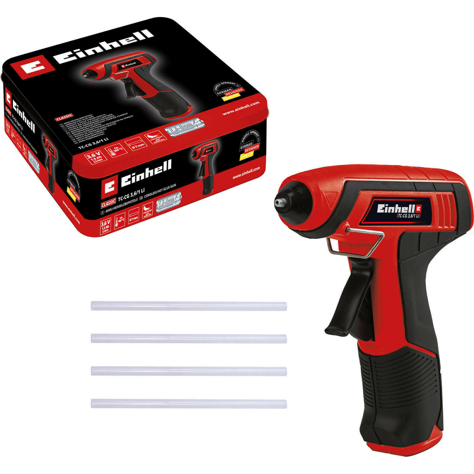 Einhell TC-CG 3.6/1 Li 3.6v Cordless Glue Gun 1 x 1.5ah Integrated Li-ion Battery Charger Case