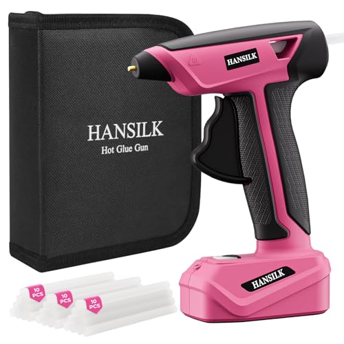 HANSILK Hot Glue Gun Cordless Hot Glue Gun 2000mAh with 30pcs Glue Sticks (7x100mm) – Type-C Rechargeable 15s Fast preheating Anti-Drip Nozzle Mini Glue Gun for DIY, Crafts and Repairs-Pink
