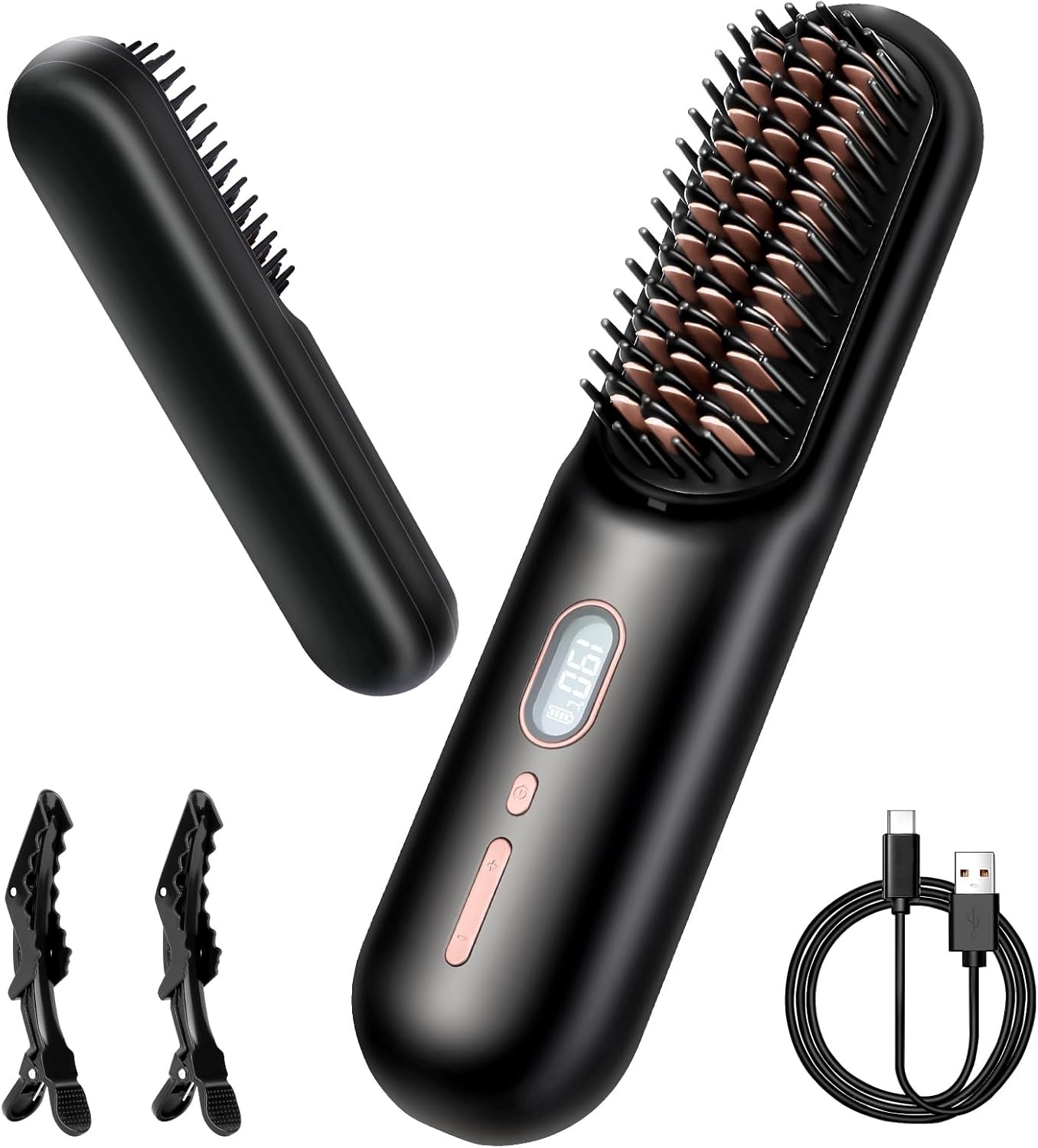 Cordless Hair Curler and Straightener Brush, Jooayou Cordless Hot Brush Recharg