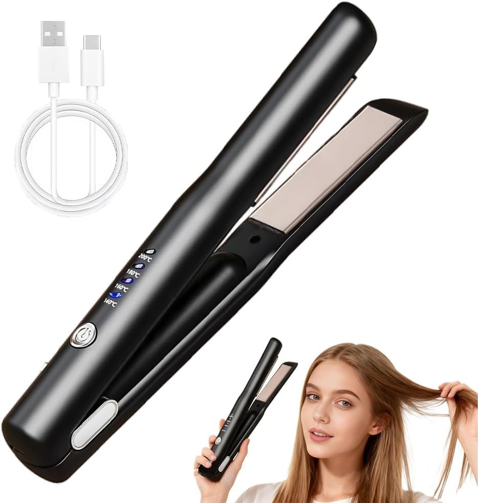 2-in-1 Cordless Hair Straightener & Curler, 4 Temp Settings, Rechargeable Trave