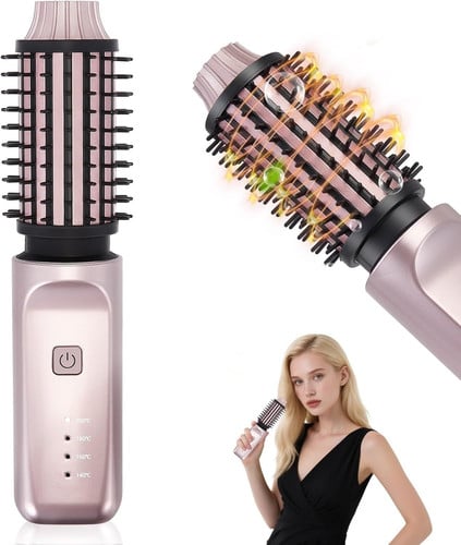 Jooayou Cordless Curling Brush, Travel Hot Brush Cordless Hair Curler Straighte