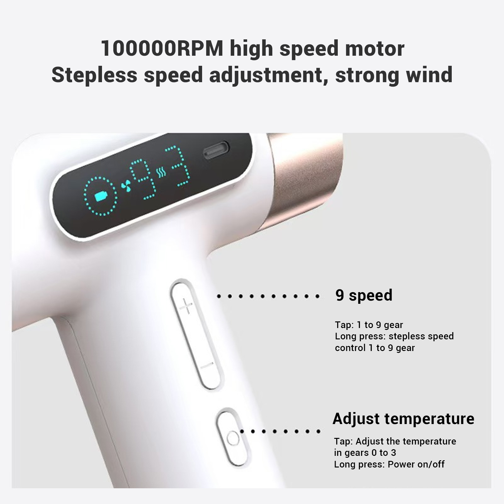 Roseate Cordless Hair Dryer 100000RPM 15000mAh USB Rechargeable Powerful 20 OU