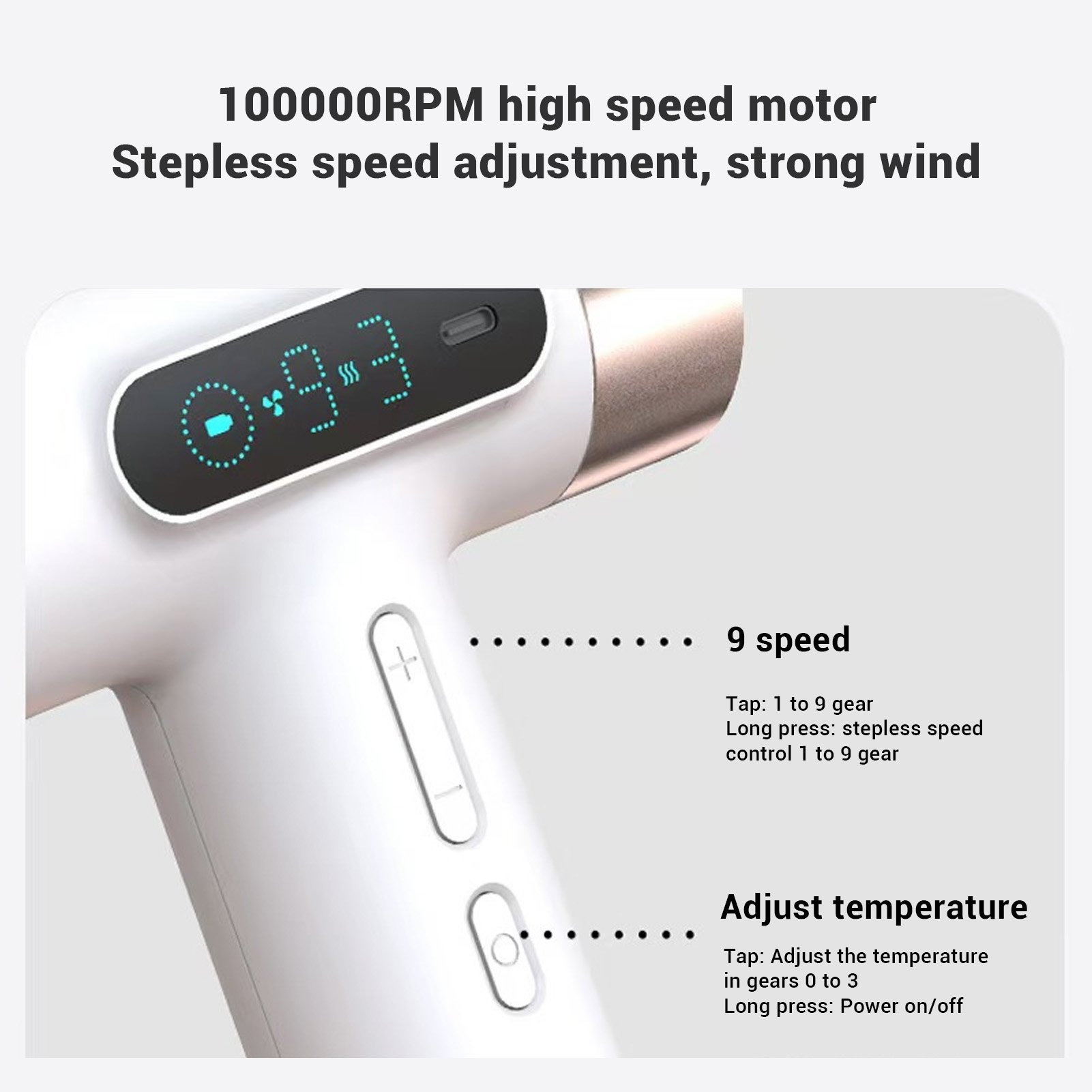 Hair Blow Dryer Cordless Hair Dryer Brushless Motor Negative Ionic 100000RPM