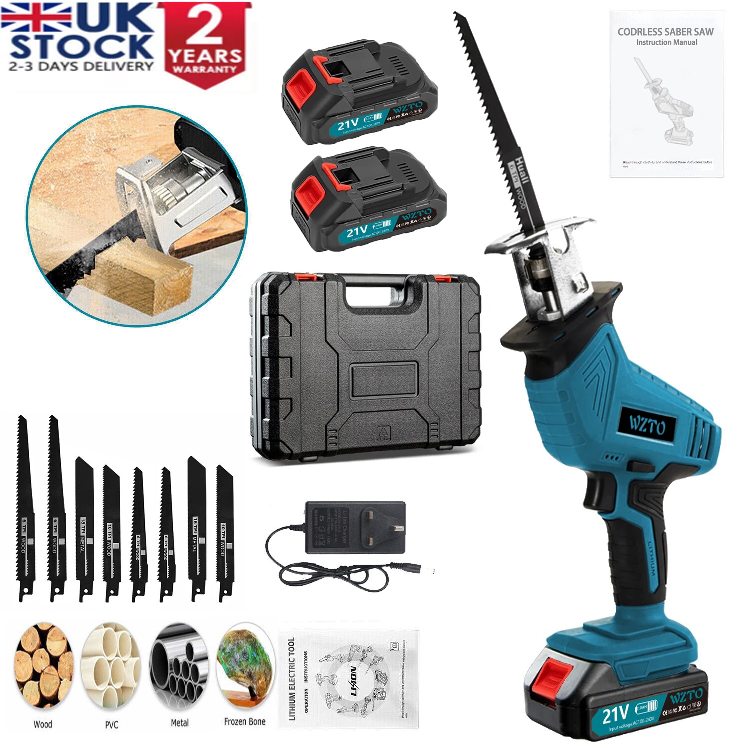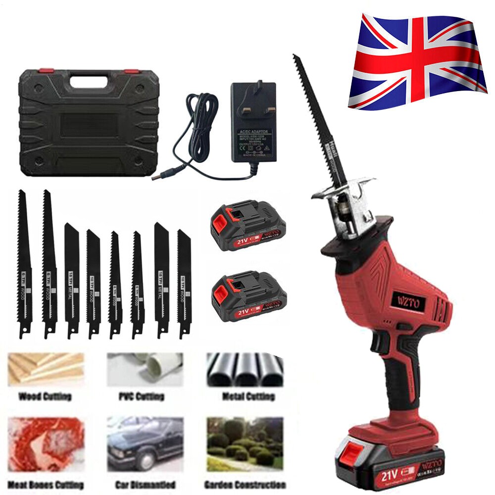 2 Battries 21V Reciprocating Saw Cordless Hand Saw Electric Wood Metal Cutter UK