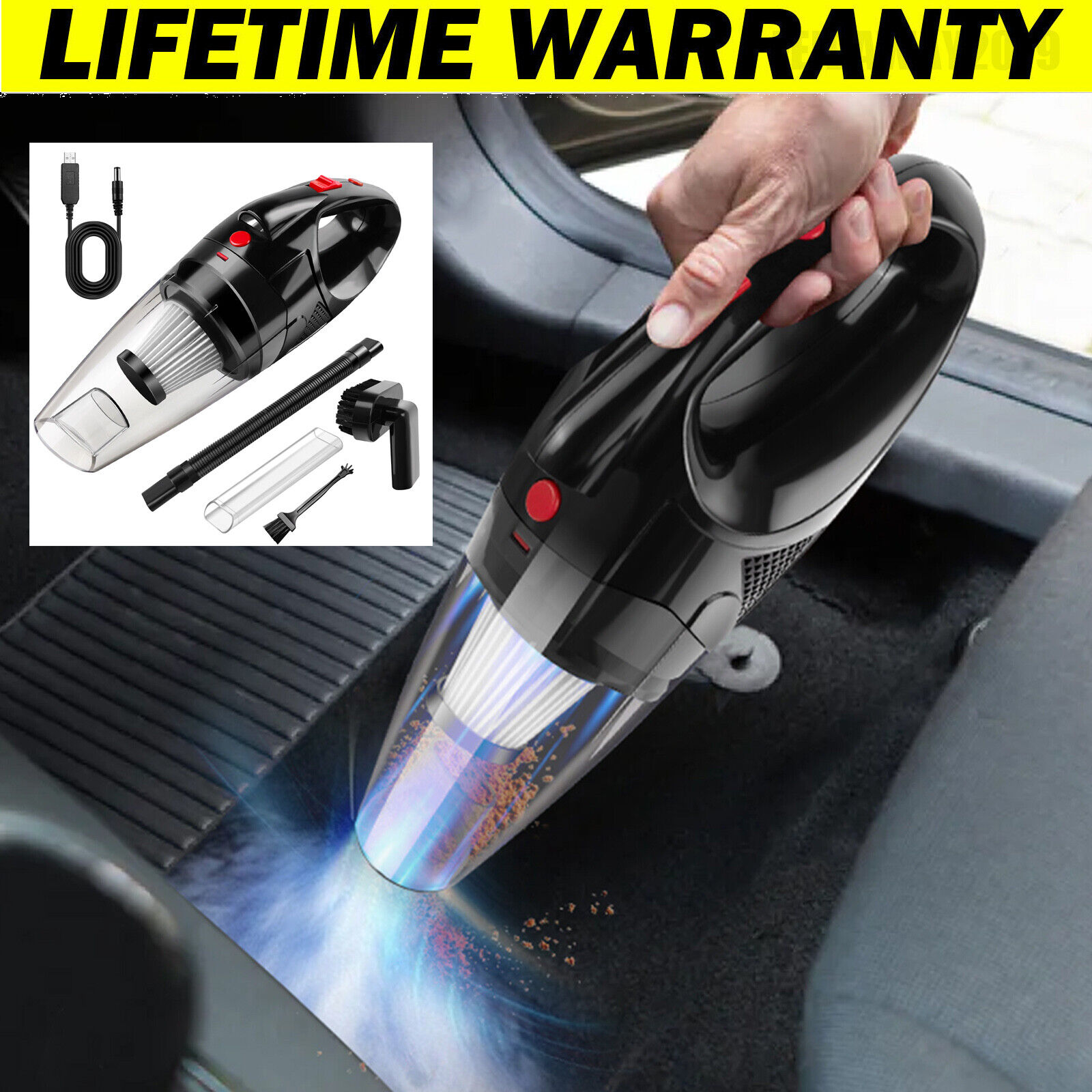 (Black) Car Vacuum Hand Cordless Rechargeable Vacuum High Power Portable Vacuum Cleaner