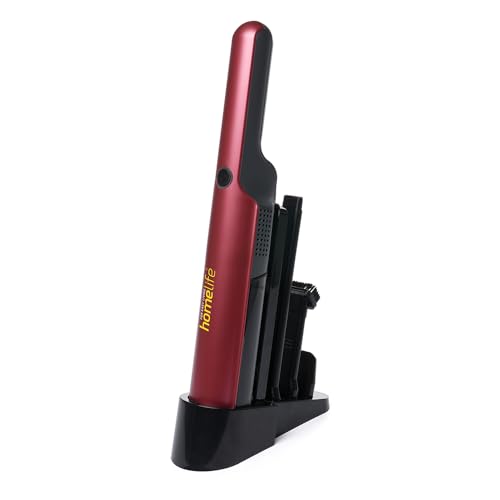 Homelife Cordless Hand Held Vacuum, Lightweight, Portable, Powerful Suction, 3 Crevice Nozzles, Multi Surface, 30 mins Run Time, Rechargeable, Charging Base, Free Standing or Wall Mountable, E8015RD