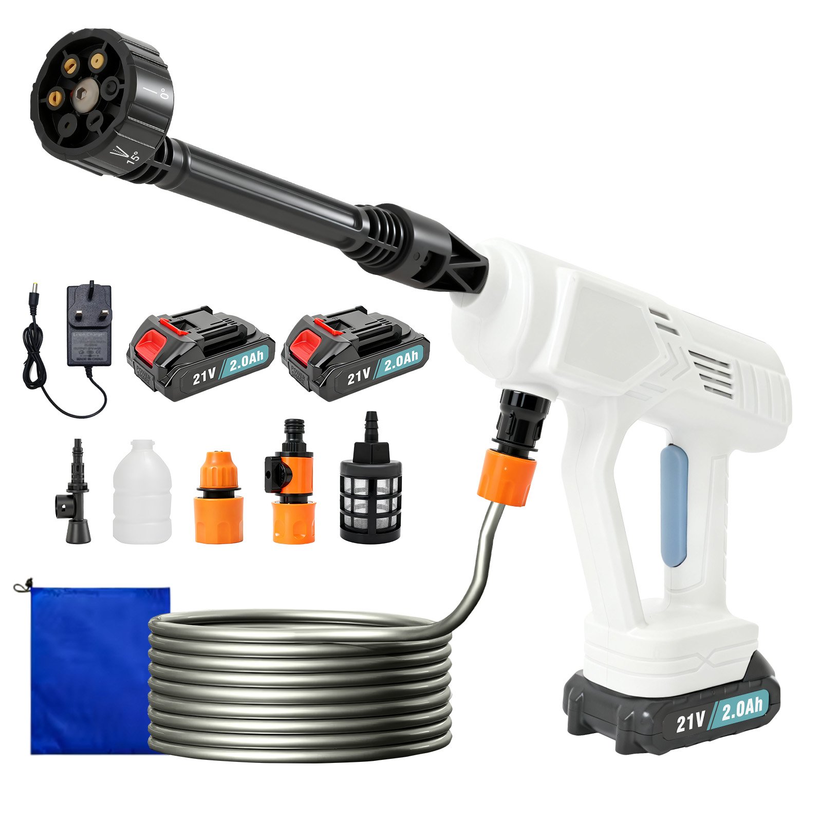 Portable Battery Powered Cordless High Pressure Washer Jet Water Wash Cleaner Gun 3 in 1 Nozzel with 2 x 21V Battery