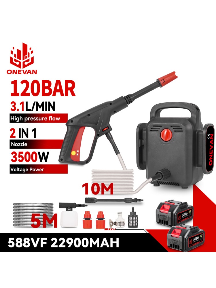 ONEVAN 120Bar Electric High Pressure Washer 3500W 2in1 Cordless Car Washing Gun Garden Cleaning Tool For Makita 18V Battery Pin