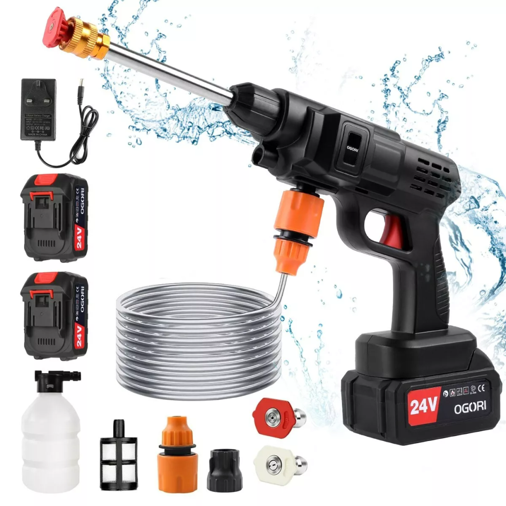 iondelce 24V Cordless Pressure Washer,200W Cordless Portable High Pressure Spray Water Gun,Portable Pressure Washer Cordless with 2 Battery 1500mAh