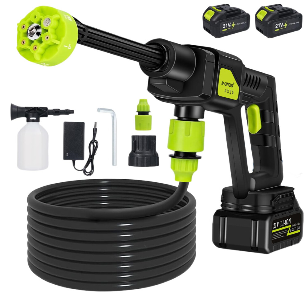 Cordless Pressure Washer, 21V Cordless Power Washer Kit 1500W Cordless High Pressure Washer Gun with 2 Nozzle, 16.5ft Hose, 2 Batteries, Battery Jet
