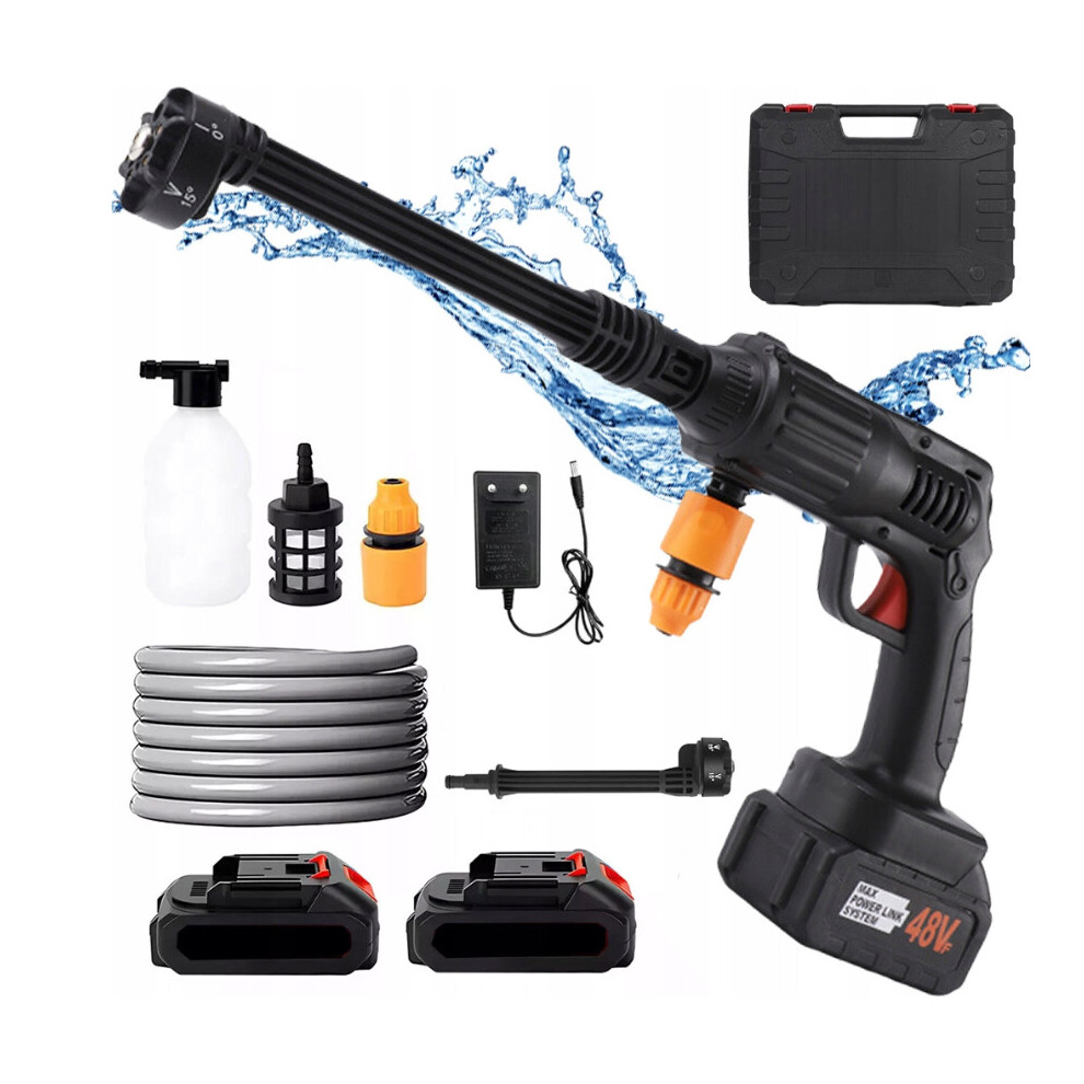 48V Car Washer High Pressure Jet Cordless Portable Water Cleaner Gun +2 Battery