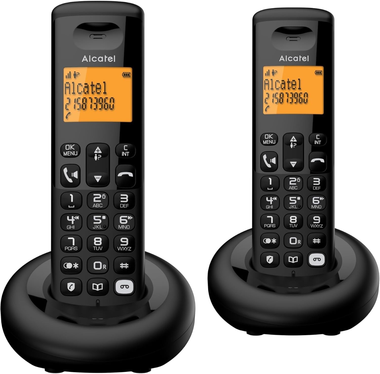 ALCATEL E260 SVoice Duo - DECT Cordless Phone with Answering Machine - Compact Design - Large Backlit Display - Handsfree - Unwanted Call Blocking - 2 Handsets - Black