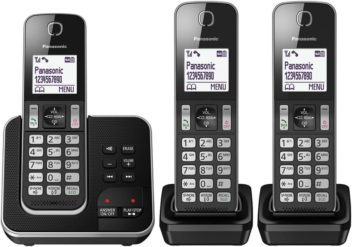Panasonic KX-TGD323 Cordless Home Phone - Answering Machine - Black (3 Headsets)