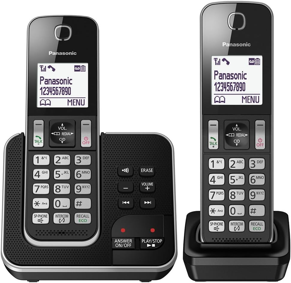Panasonic KX-TGD322 Cordless Home Phone with Nuisance Call Blocker and Digital Answering Machine - Black & Silver (Pack of 2)