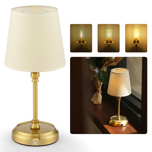 GWJKG Vintage Lamp,2000mAh Rechargeable Lamps Small Cordless Lamps,3 Colors+10 Brightness+Touch Small Lamp for Kitchen Counter,Battery Operated Ambient Light for Bedroom/Bathroom Shower/Table,Gift for