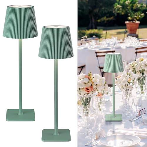 LuminexDesigns Rechargeable Table Lamp Set of 2 LED Cordless Lamps – 5200mAh Battery, Stepless Dimming, 3 Colour Temperatures, IP54 Water-Resistant, for Indoor & Outdoor Use – Green