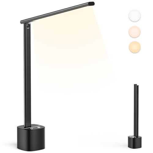 Hapfish Rechargeable Cordless LED Table Lamp, 5000mAh Battery Operated Lamps, Aluminum, Portable & Dimmable, Wireless Rotatable Foldable LED Desk Lamp for Office Study Work Reading (Black)