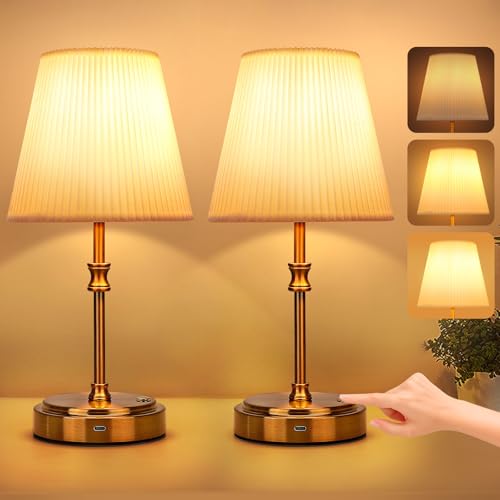 Aooshine Gold Cordless Table Lamps Set of 2, Touch Lamp with 3-Color Modes Rechargeable Night Light, Wireless Touch Control Bedside Lamps for Bedroom(Gold)