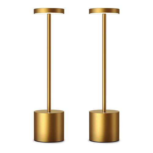 Hapfish 2 Pack Rechargeable Cordless LED Table Lamp, 5000mAh Battery Operated Table Lamps, 3 Color Modes, Dimmable, USB Desk Light for Home, Dining, Indoor, Outdoor, Living Room – Gold