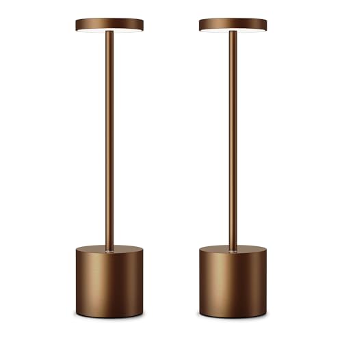 Rechargeable Lamp with 3 Color Modes, Metal Cordless Lamps Set of 2, Touch Dimming, Wireless, IP54 Waterproof, Rechargeable Table Lamp for Restaurant Bedroom Indoor Outdoor