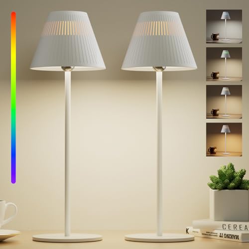 Honeywell Cordless Table Lamps Rechargeable Set of 2, M1 Sunturalux Portable LED Desk Lamp 5200mAh Rechargeable 4Color 9RGB Stepless Dimming Up Night Light for Restaurant Bedroom Bedside Lamps