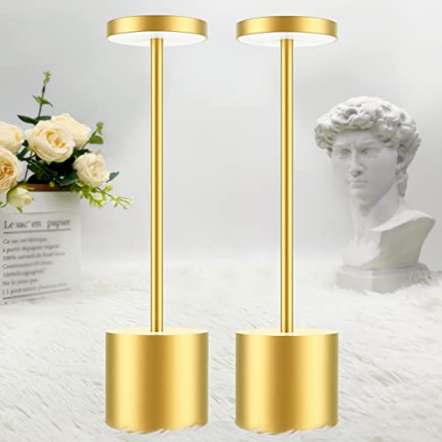 HYMZP Rechargeable Cordless Table Lamps, 34CM Portable 6000mAh Battery Table Light, 3 Color Stepless Dimming LED Table Light with Memory Function, for Outdoor/Patio/Restaurant (2 Pack Gold)
