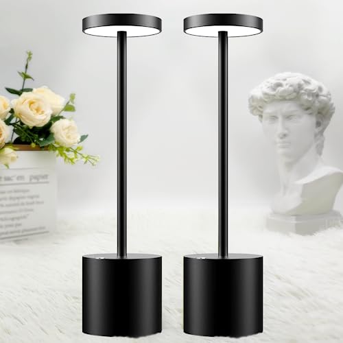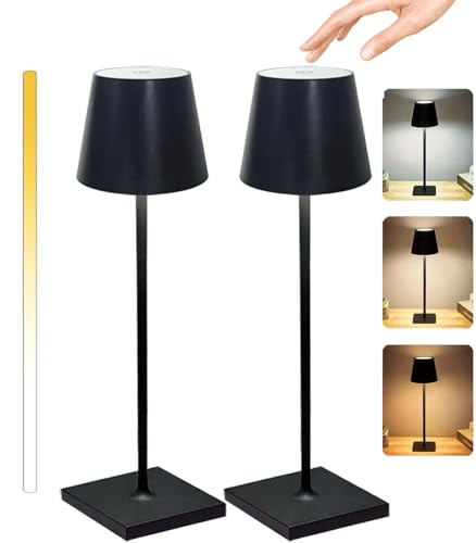 CXYWBD 2-Pack Outdoor Cordless Rechargeable, Battery Powered Dimmable Table Lamps Dining Room/Patio, Black Suitable for bedrooms, Living Rooms, Offices, Book
