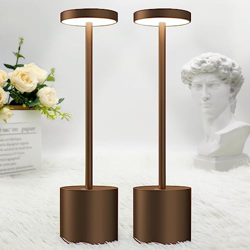 Cakkone Rechargeable Lamp with 3 Color Modes, Metal Cordless Lamps Set of 2, Touch Dimming, Wireless, IP54 Waterproof, Rechargeable Table Lamp for Restaurant Bedroom Indoor Outdoor