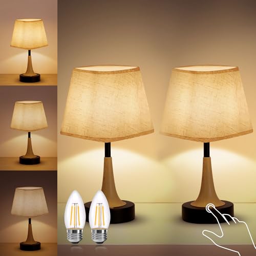 ZR98US 2-Pack of Cordless Desk Lamps with Fabric Shades, 3-Tone Lighting (Black)